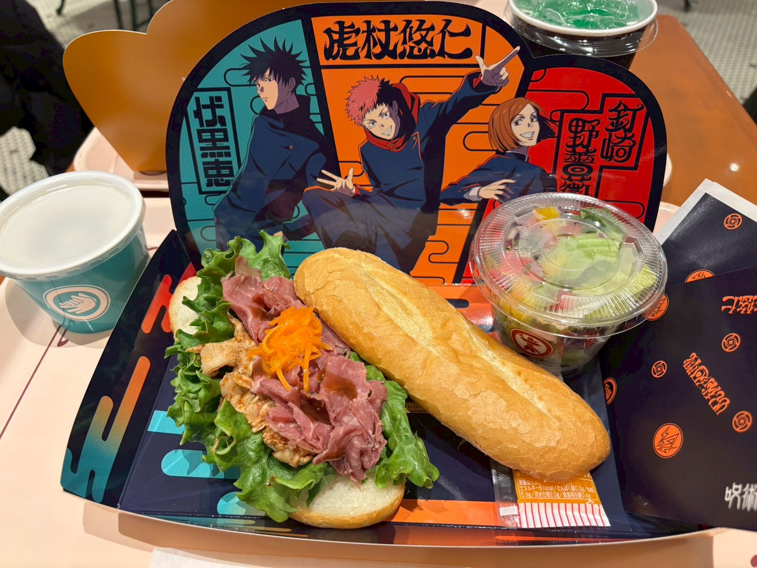 虎杖(サンドイッチ)、伏黒(スープ)、釘崎(サラダ)のセットです。