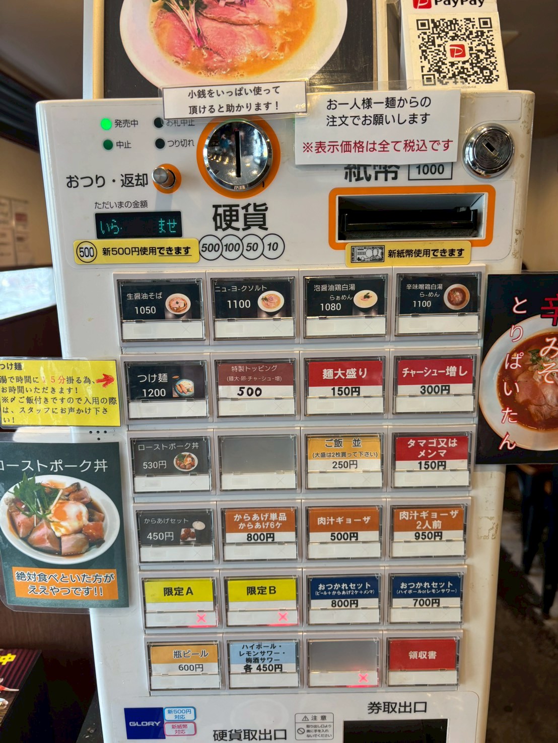 商品を決めると入り口近くにある券売機でチケットを購入します。