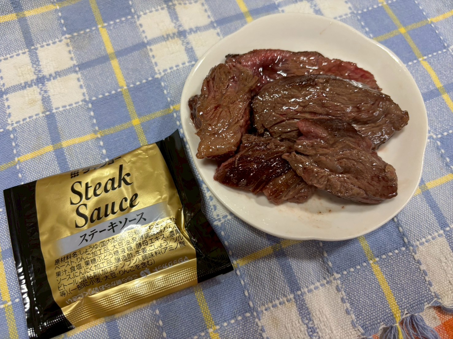 今度は「付属のステーキソース」をかけて、ご飯と一緒にいただきます。