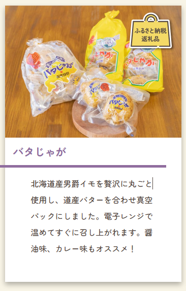 その中でも「バタじゃが」はふるさと納税の返礼品としても使われている自慢の一品です。
