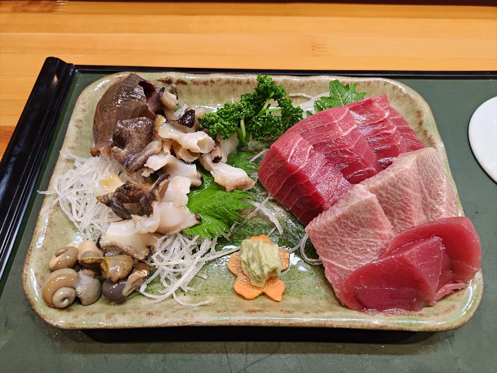 立ち寄りました。大間産のもずく酢、大間産本マグロ、青つぶ、厚岸産生カキ