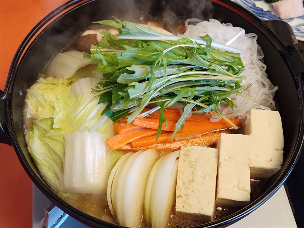松阪牛まるよし鍋は松阪牛のモモ・バラ肉を使い、味付けをすき焼き風味に仕上げた