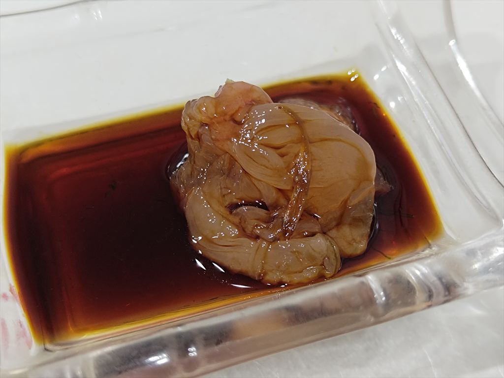 特権です。肝は柔らかく濃厚な旨味を持ちます。硬い身と柔らかい肝と異なる食感