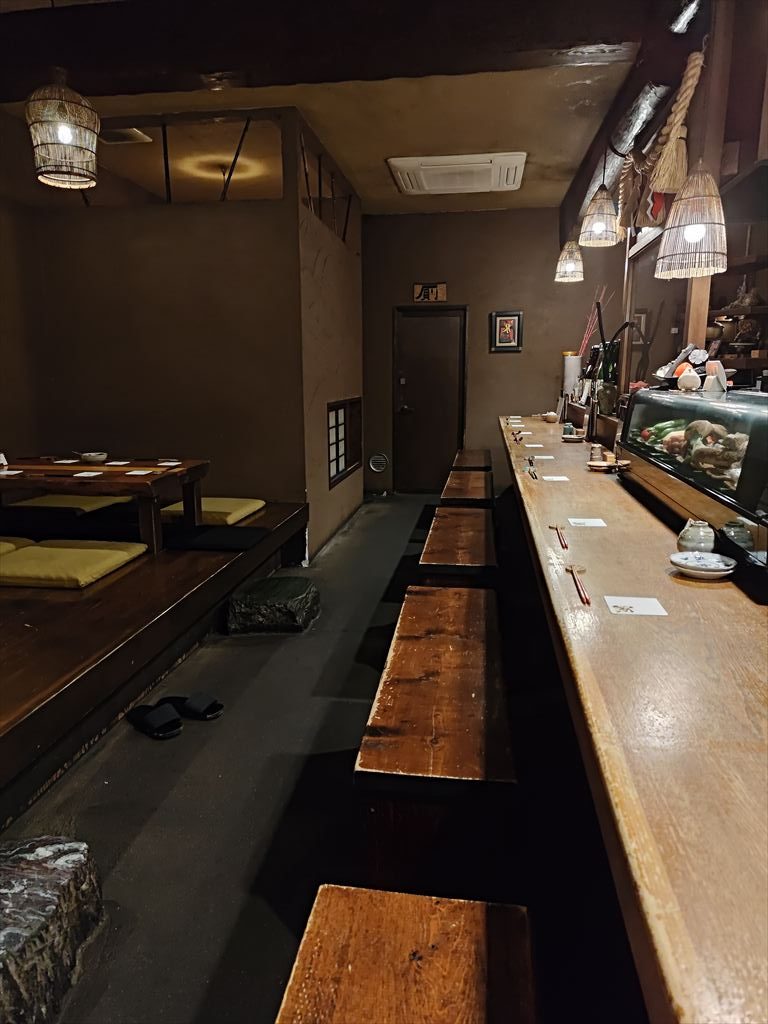 お店なので、予約必須となります。古民家風の店内は少し薄暗くムードが