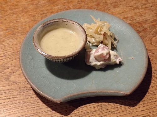 お通しにしてはレベルが高いものです。この中で特筆すべきはヨコワ