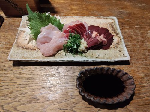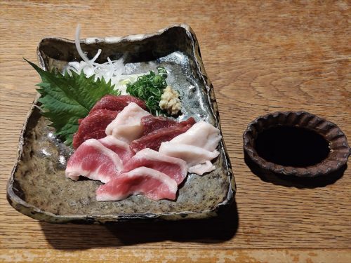 と思いますが、焼き鳥以外に馬刺し、鳥刺しが提供されます。