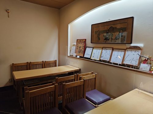 店の入り口は間口が狭く、奥行きが非常に長いいわゆる「うなぎの寝床」と