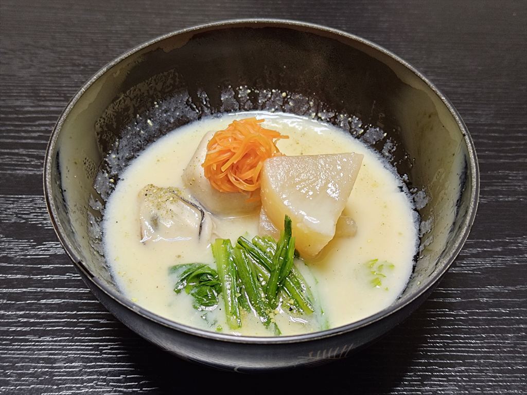 せてカキもあります。カキと白味噌は相性がよく、白味噌の持つコクがカキの