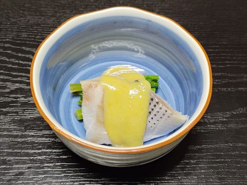 辛子酢味噌掛けは酸味と味噌のコク、辛子の辛味が魚の臭みを目立たたなくし