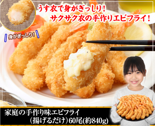 【773:家庭の手作り味エビフライ(揚げるだけ)60尾】