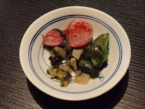 ある程度食べて味が飽きてきたら、お漬物やいくらで味の変化を加え