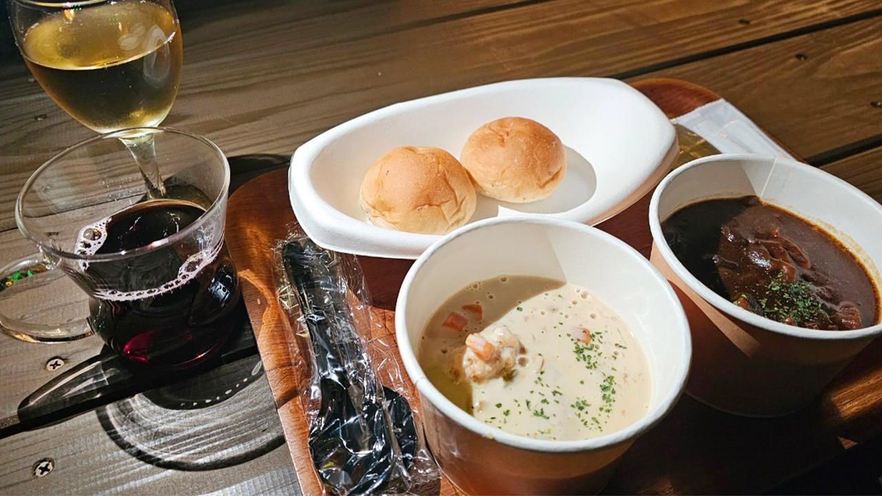 主な出店内容 フード&ドリンク: 特製グリューワイン、国産牛とキノコのビーフシチュー(赤ワイン風味)、ホットチョコレート(黒い森)、シュトーレン、クリスマスチキンプレートなど。