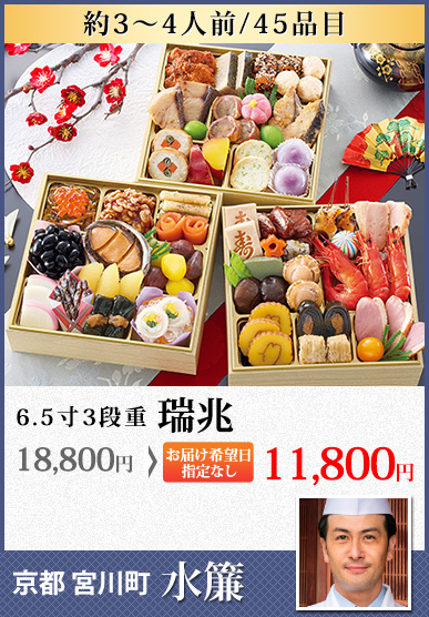 お届け希望日なしで、料亭監修の本格おせちがなんと福袋よりも安い1万円近くの価格でゲットすることができます!品数も40品以上と種類豊富なおせちになっているので、お手頃な価格で色々な料理を楽しみたい方にうってつけのおせちになっています。