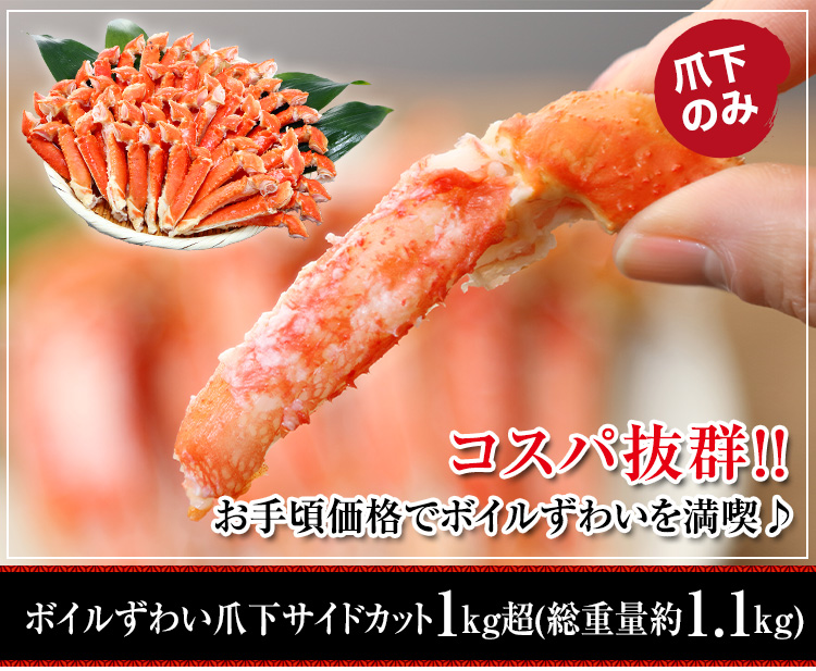 【コスパ最強】ボイルずわい爪下サイドカット1kg超(総重量約1.1kg)