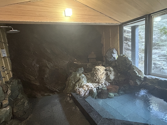 お風呂は貸し切り。岩がむき出しの岩風呂で雰囲気抜群。