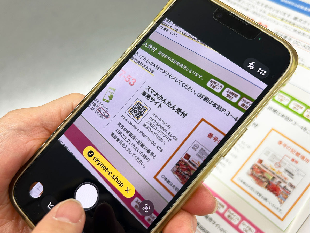 カタログ記載の二次元コードをスマホのカメラで読み取り、