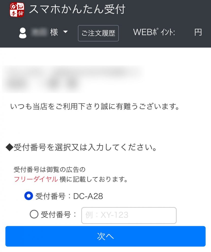 📱3.受付番号を入力