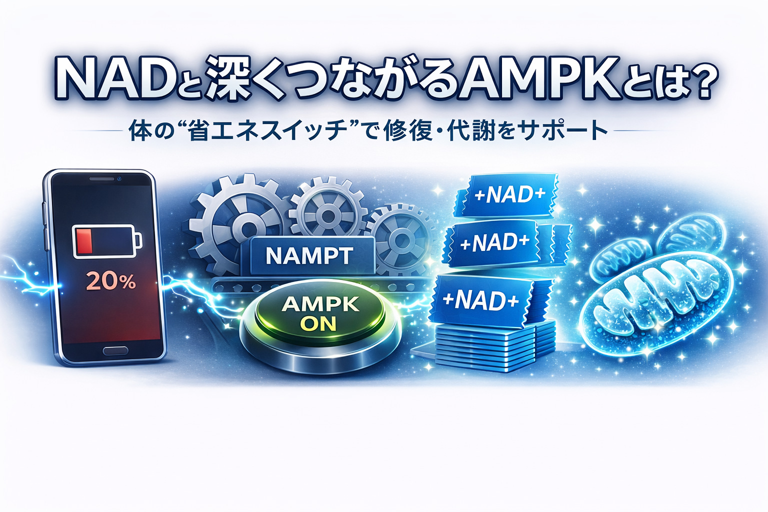 「NAD⁺が大事って聞くけど、AMPKも一緒に出てくる…結局どうつながってるの?」