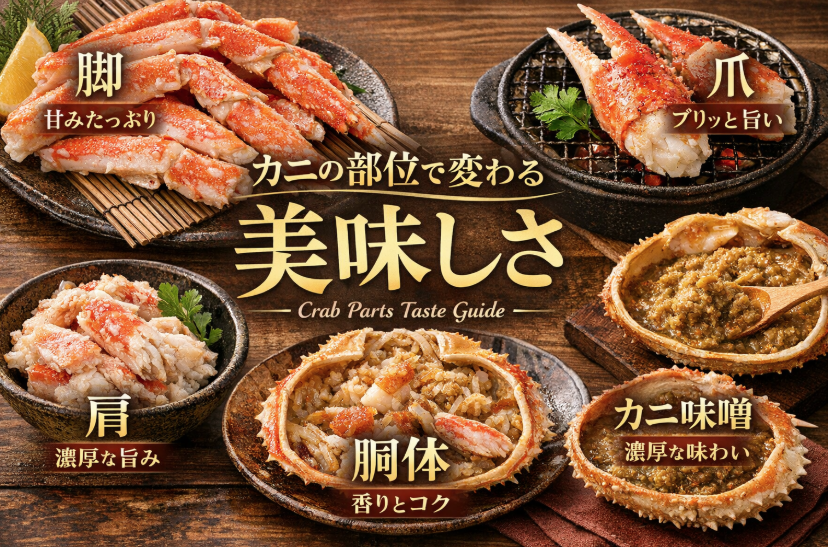 「部位の個性」を知って食べ分けるだけで、同じカニでも体験が変わります。次にカニを食べるときは、ぜひ“部位ごとに最高の食べ方”で楽しんでみてください。