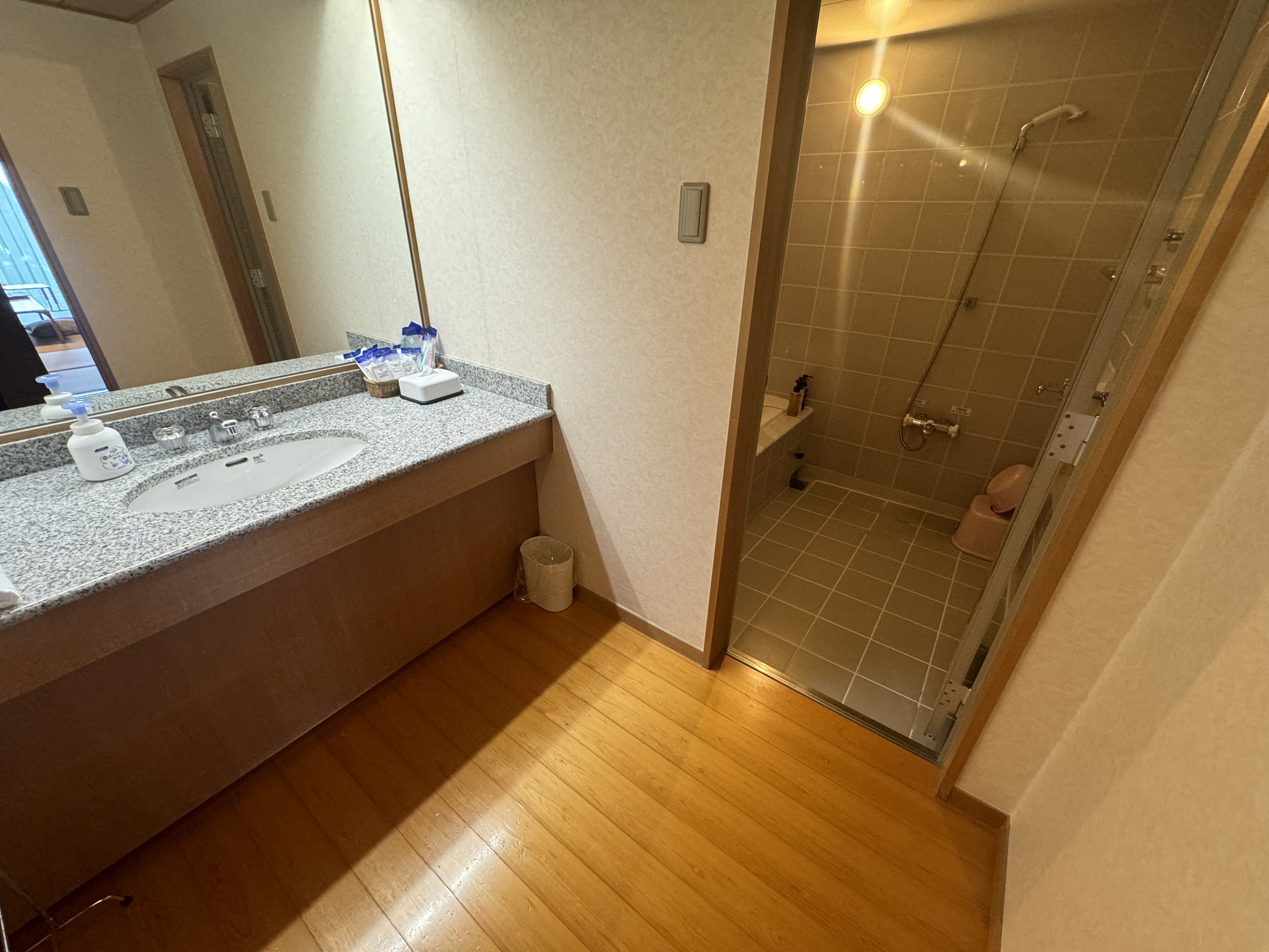 家族4人が並んでも余裕のある洗面スペースは、 子連れ旅行ではとても助かります。