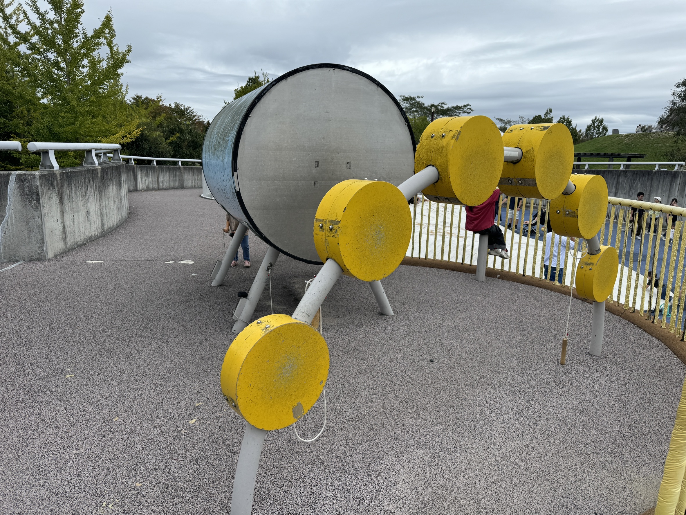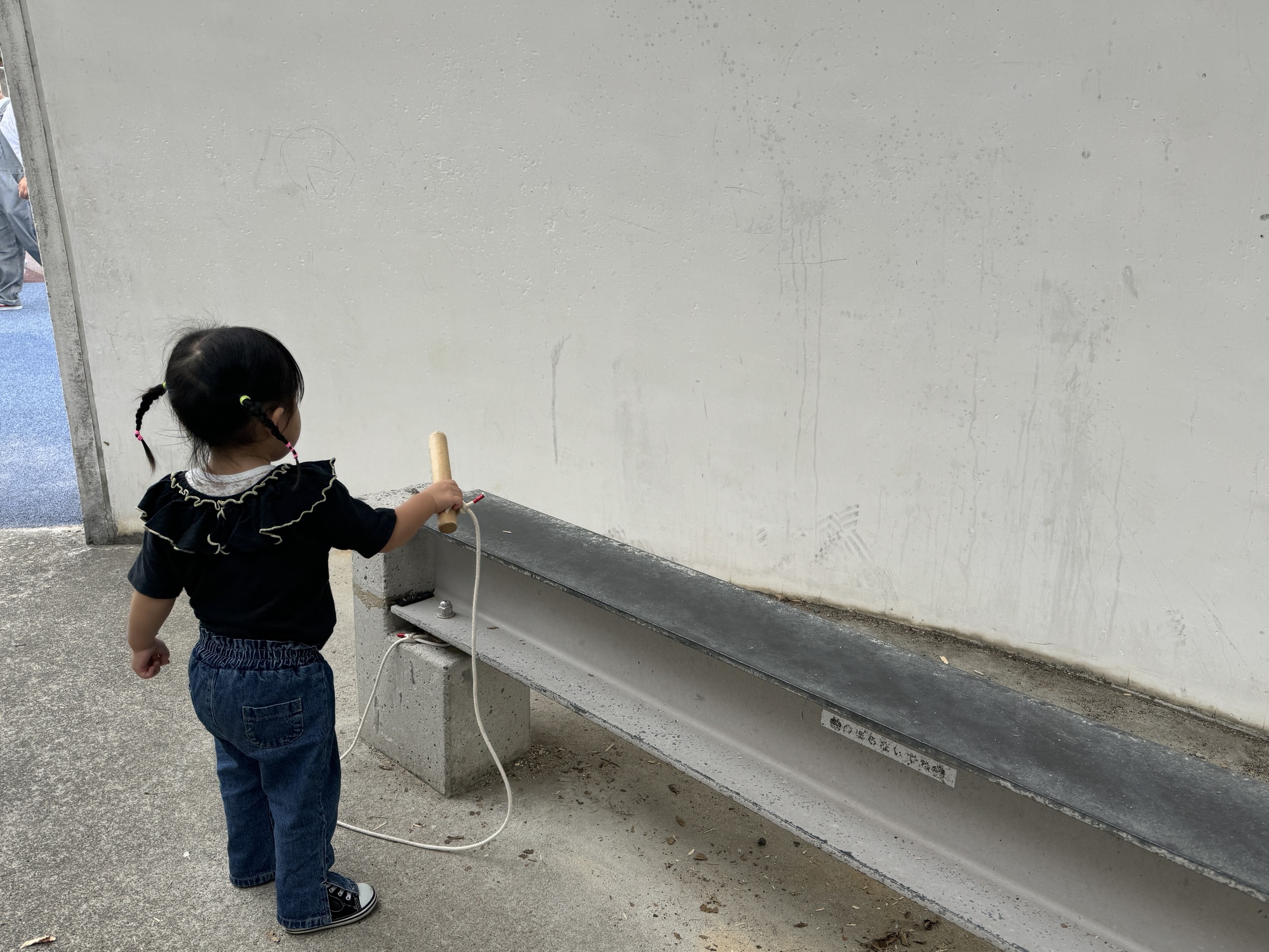 音のなる遊具に夢中で、かみなりドンになりきって遊んでいました!