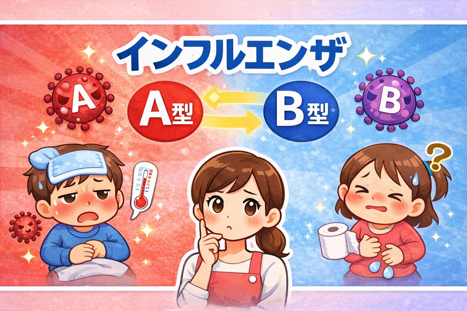 インフルエンザには主に「A型」と「B型」があります。
