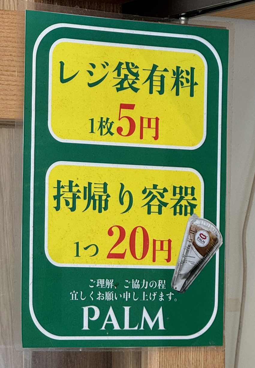 レジ袋や持帰り容器も購入できます。