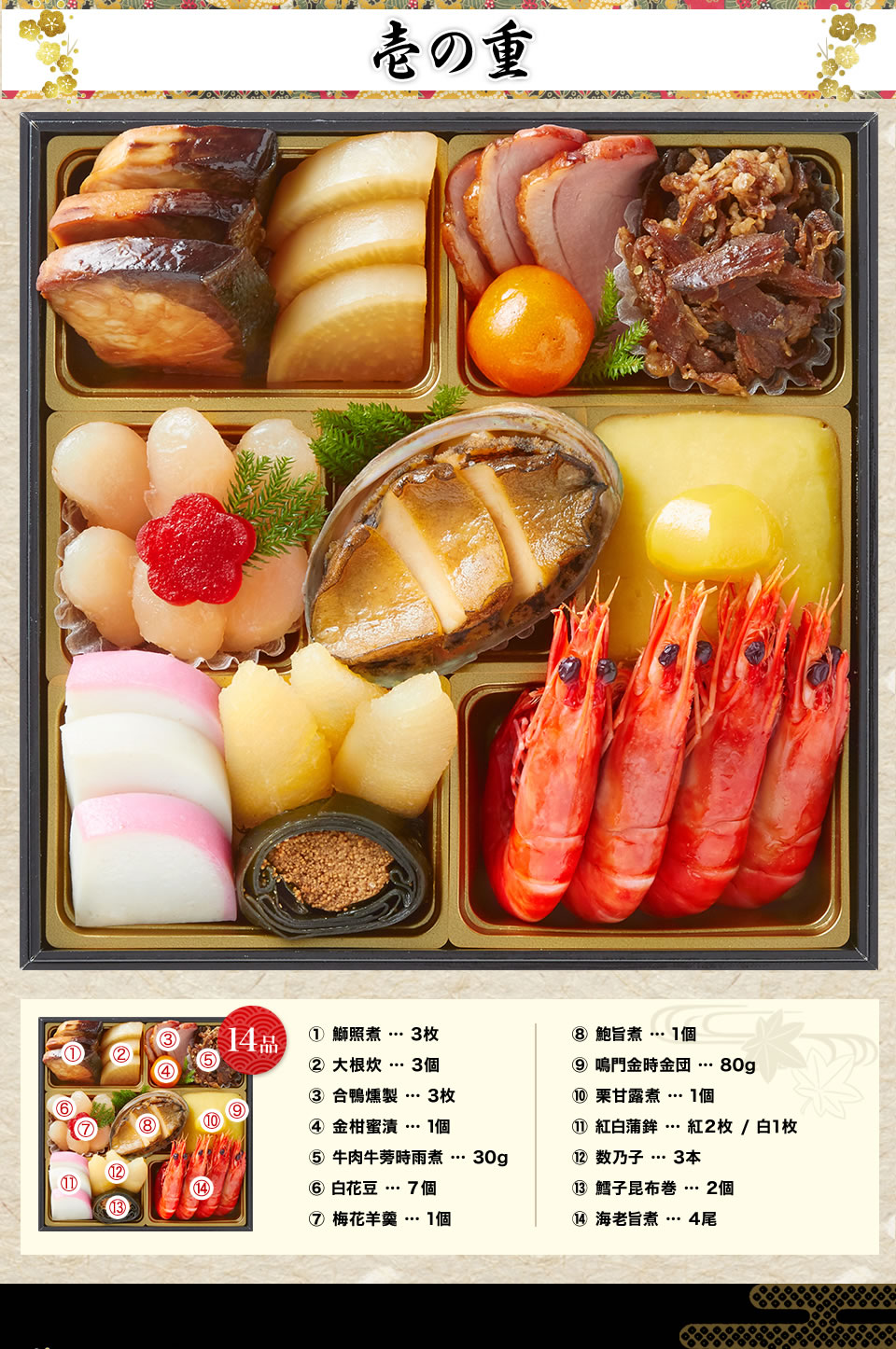 【壱の重】伝統と豪華さが詰まった祝い重 (全14品)