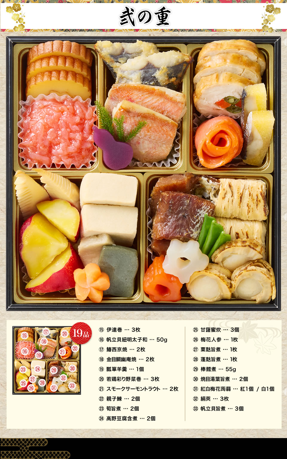 【弐の重】料亭の技が光る彩り豊かな重 (全19品)
