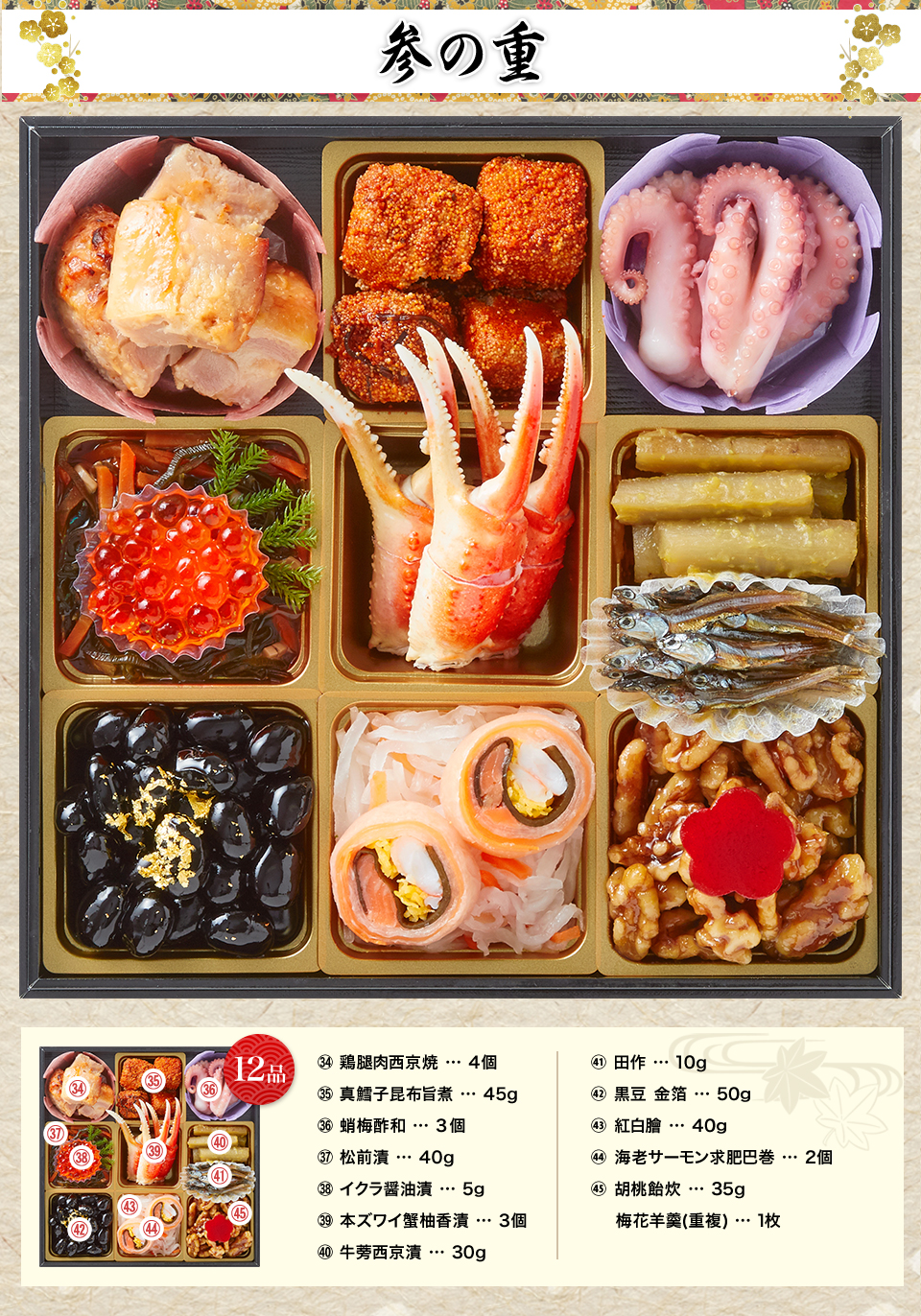 【参の重】お酒と共に楽しむ大人のご馳走重 (全12品)