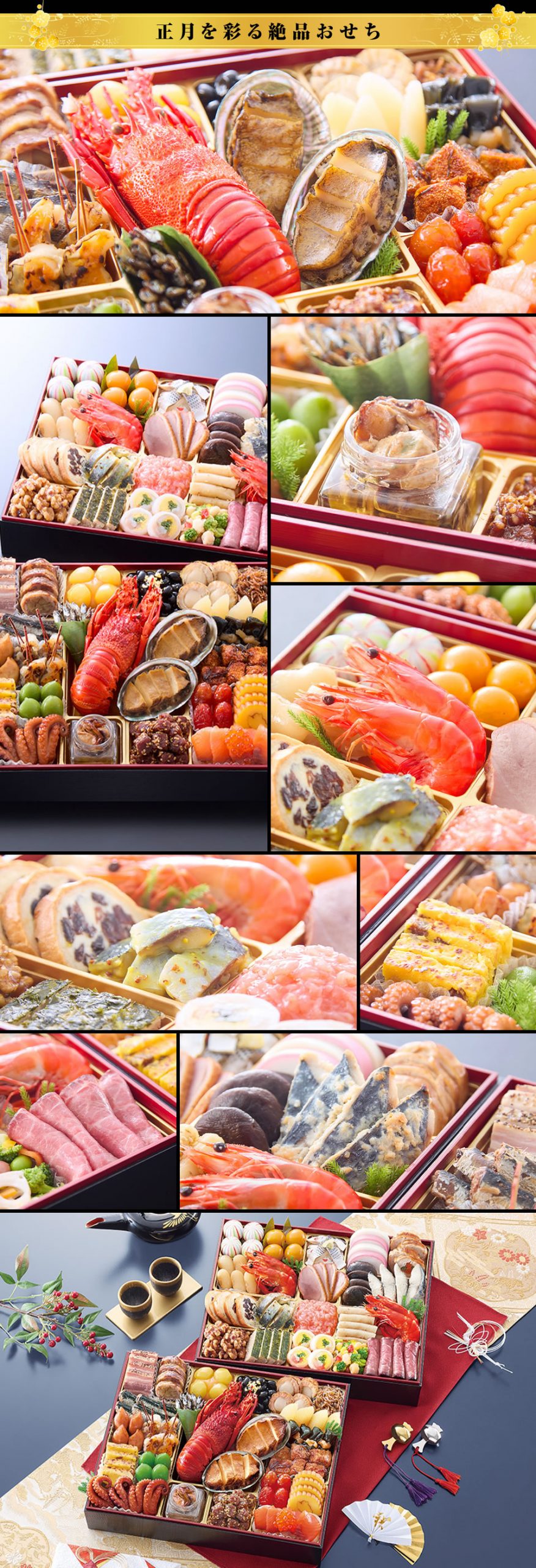 料理の個数(数えられるもの)が4人前ずつなので、息子家族4人と娘家族4人用にいつも購入しているのですが、今回は我々老夫婦2人にも購入してみました。どの料理も工夫がなされており美味しかったのですが、ロブスターには身もたくさん入っており美味しく食べ応えがありました。来年もおそらく3世帯分の購入になると思います。
