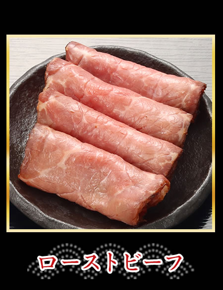 ローストビーフ 牛肉の旨味を最大限に引き出すよう、低温でじっくりと火を入れ、しっとりと柔らかく仕上げました。お重を華やかに彩る、世代を問わず人気の主役級メニューです。 |