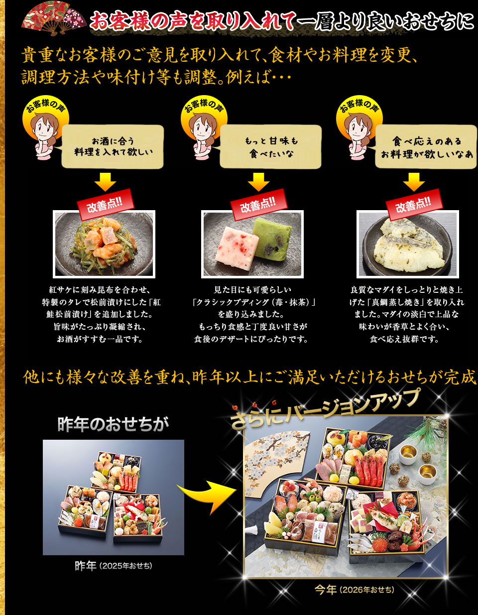 2026年版の「招福重」も、お客様の声を反映してさらにパワーアップ!