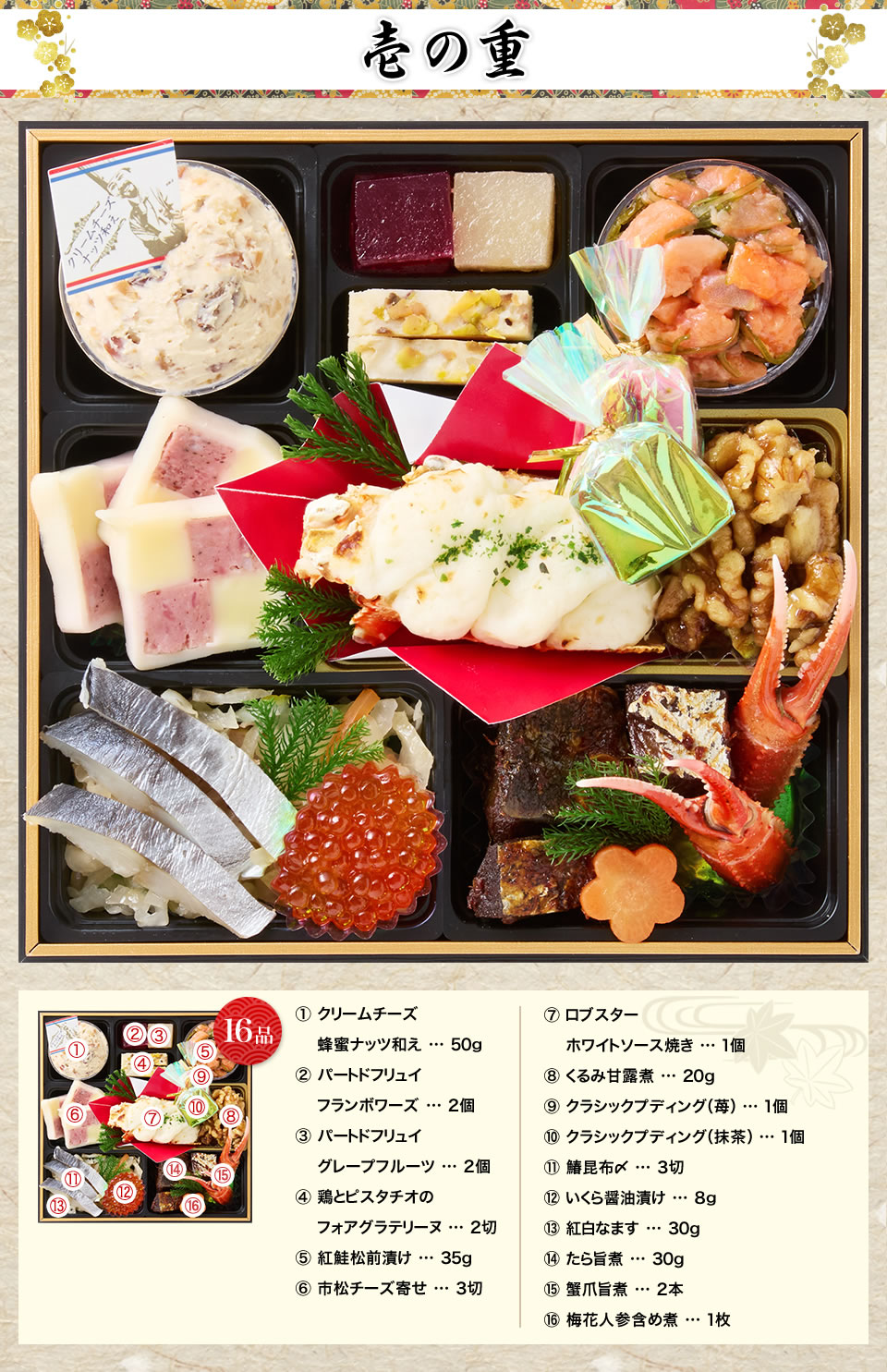 これだけ豪華でこだわりが詰まったおせち「招福重」。