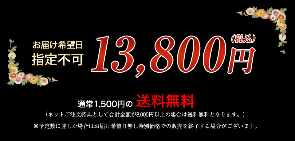 ※予定数に達した場合は、お届け希望日無し特別価格での販売を終了する場合がございます。