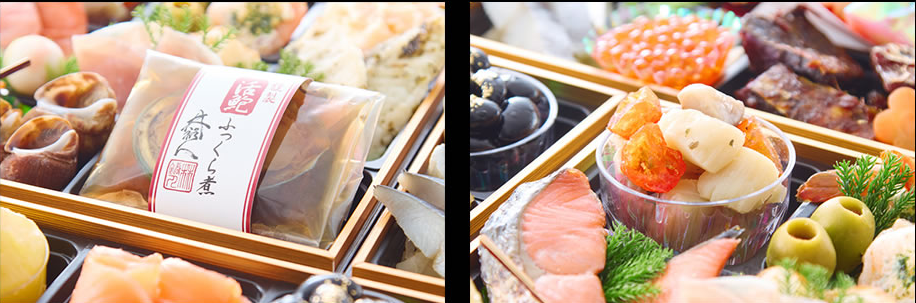 元旦、あるいは大晦日から、冷蔵庫から取り出してすぐに食卓へ!盛り付け済みなので、蓋を開ければすぐに豪華なごちそうが並びます。