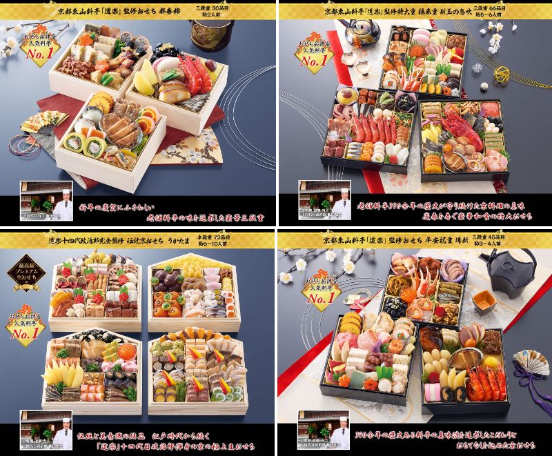 匠本舗がお届けする、料亭「道楽」監修の4種類のおせち。