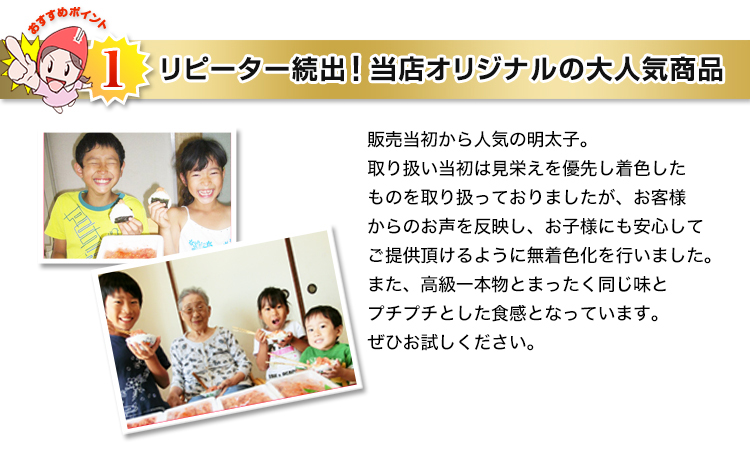 この明太子は、博多の大手老舗メーカーに製造を依頼している、れっきとした「匠本舗オリジナル品」。