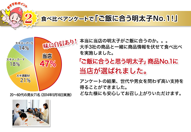 理由1:【客観的データあり】「ご飯に合う明太子 No.1」の称号!