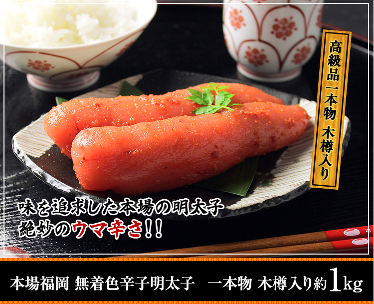 ▼【ギフトに最適】本場福岡 無着色辛子明太子 一本物 木樽入り 約1kg▼