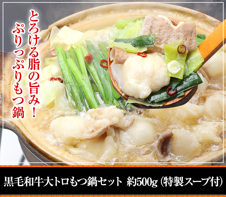 黒毛和牛大トロもつ鍋セット 約500g (特製スープ付)