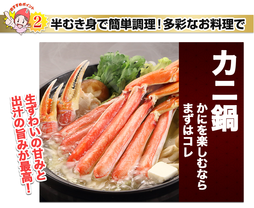 「超特大」で、「生」の「ずわい蟹」が、「半むき身」で、「3kg超」も入った満足セット。