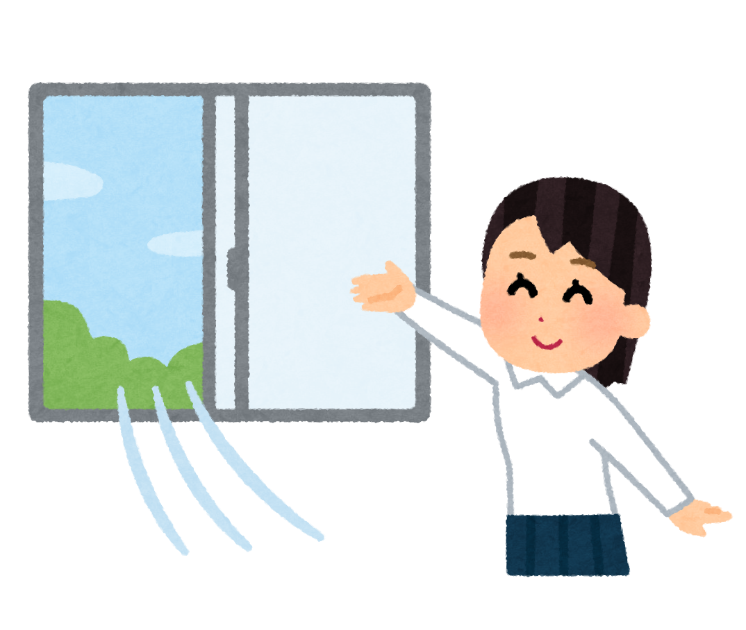 2箇所の窓を開けて、空気の通り道を作ってあげると効率よく換気できますよ。