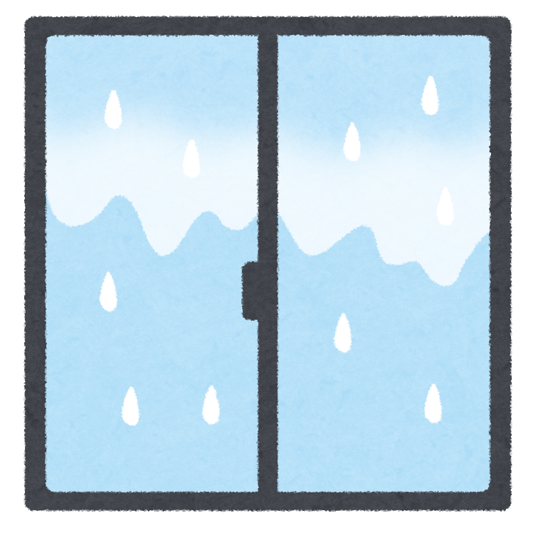 結露は、暖かい室内の空気が冷たい窓で冷やされることで発生します。