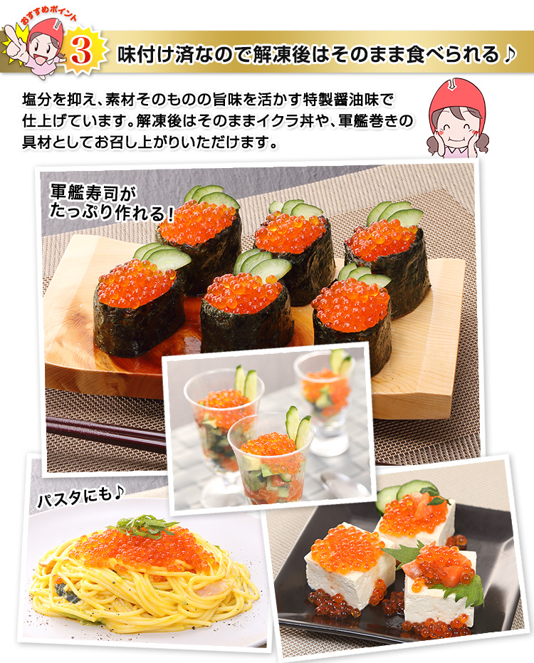 そんな風に、シーンに合わせて使い分けるのも、イクラを知り尽くした「通」な楽しみ方ですよ!