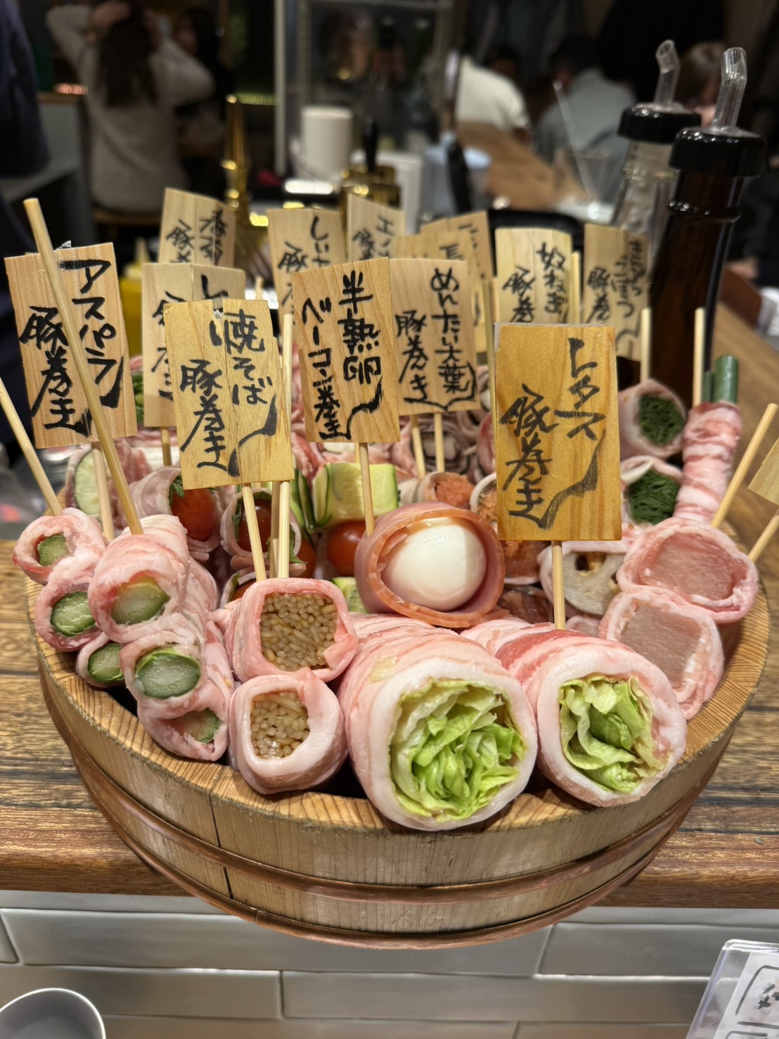 これがテンションあがるんですよね~!種類が多くて悩みますが、まずはレタス豚巻きがおすすめです!