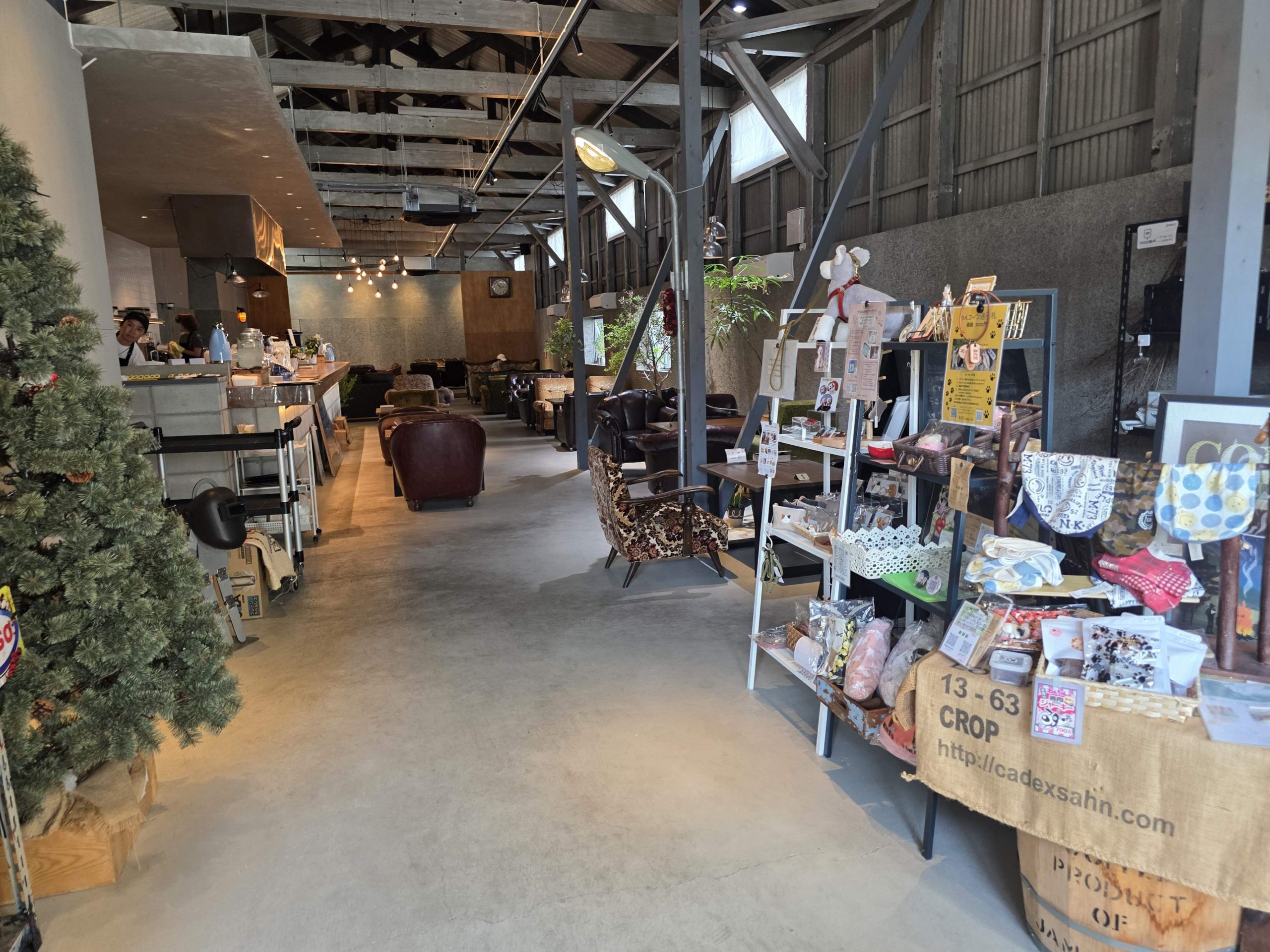 ・倉庫改装という広さと照明の雰囲気が、写真映えに強い。