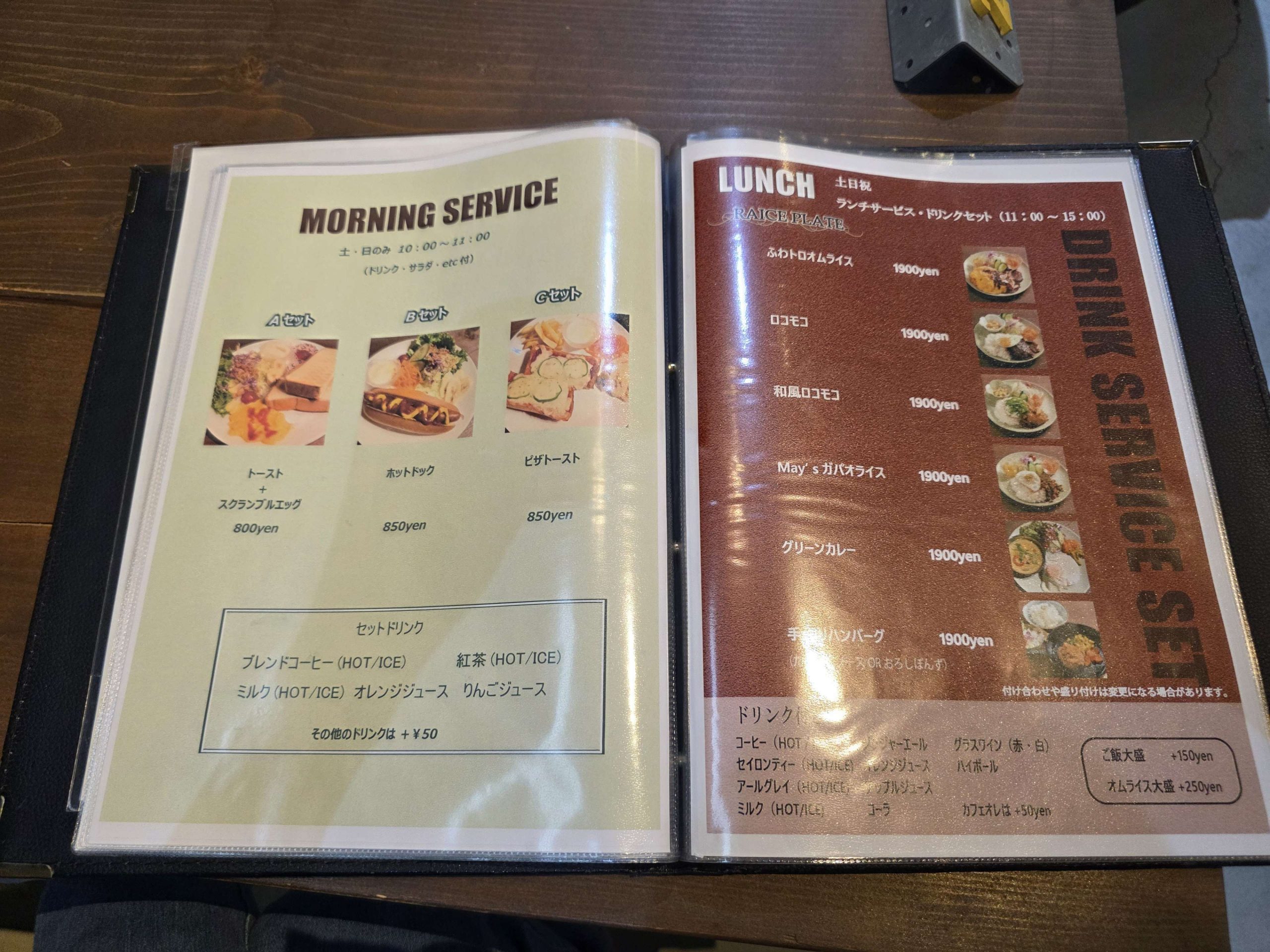 ・ランチ&通常メニューでは「手作りハンバーグ(おろし玉ねぎソース・おろしポン酢)」「ふわトロオムライス」「May’s ガパオライス/和風ロコモコ」「ナポリタン」「たらこパスタ」などバラエティ豊か。