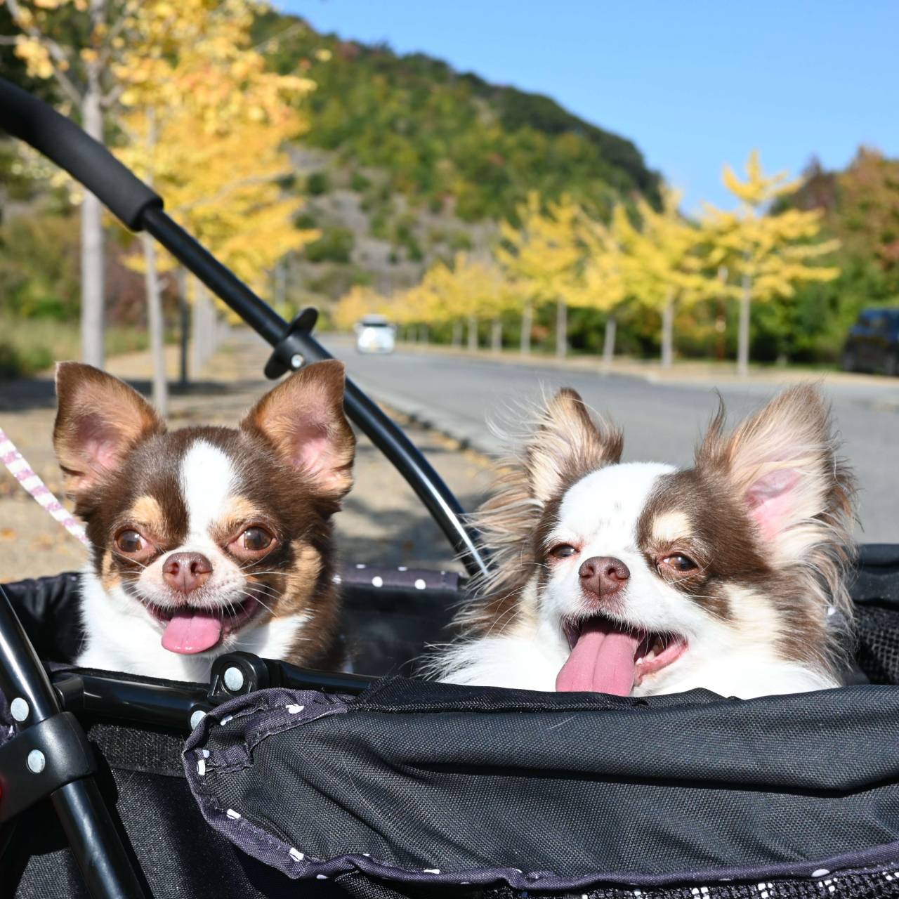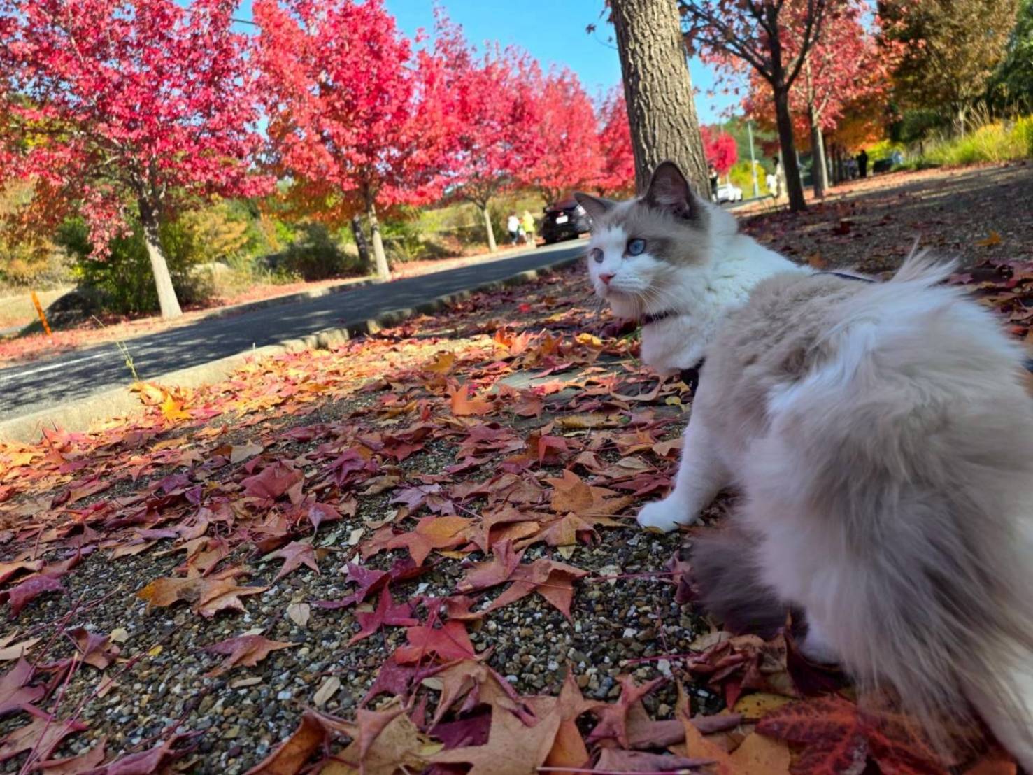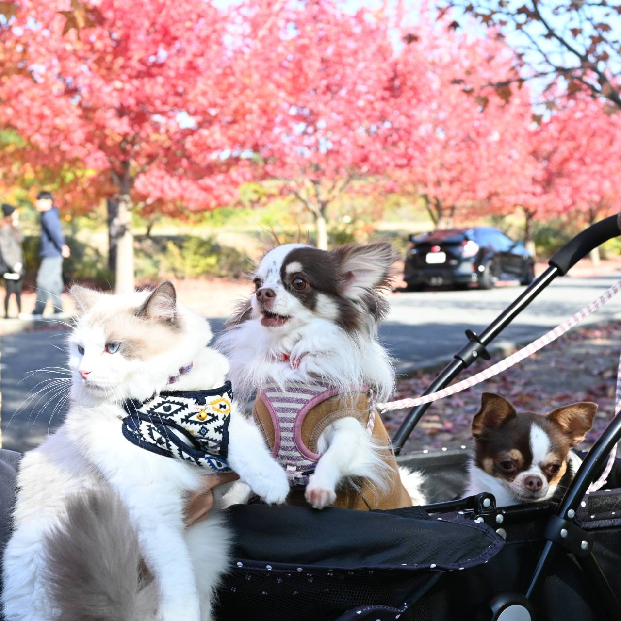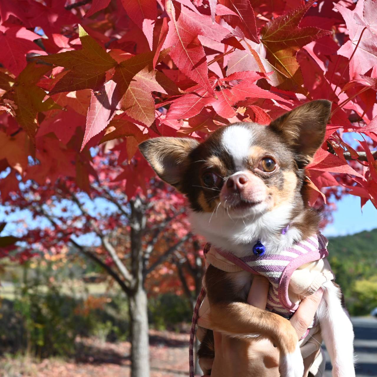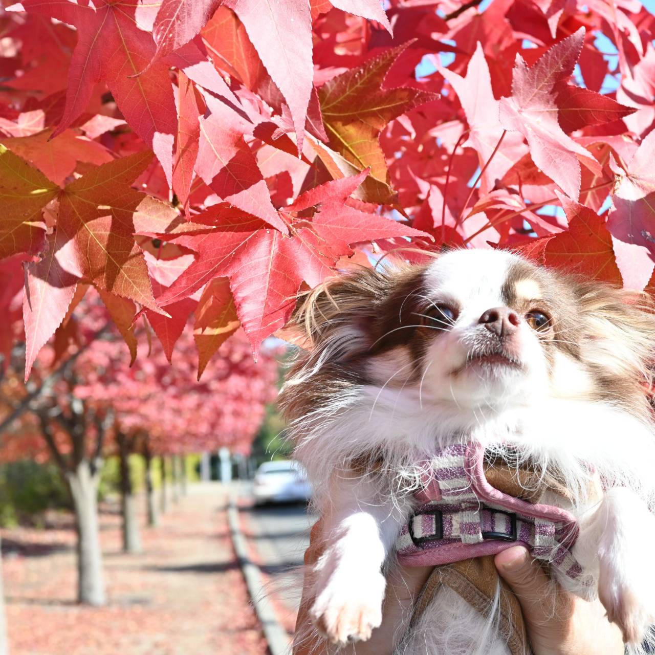 紅葉している木を背景に、ペットとの写真撮影は非常に映えるポイント。