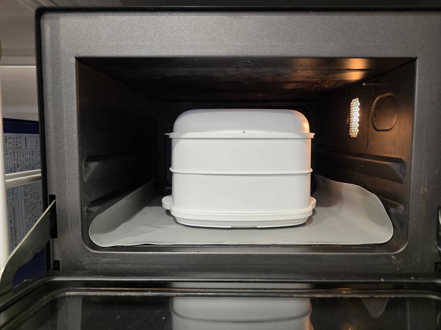 一番下の受け皿に100mlのお湯を入れてレンジへ・・・